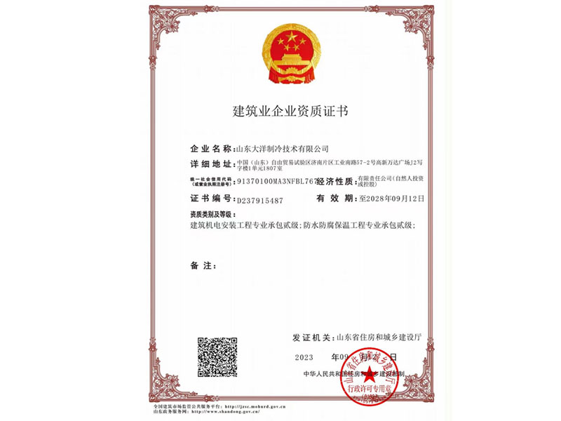 山東大洋制冷 · 資質證書